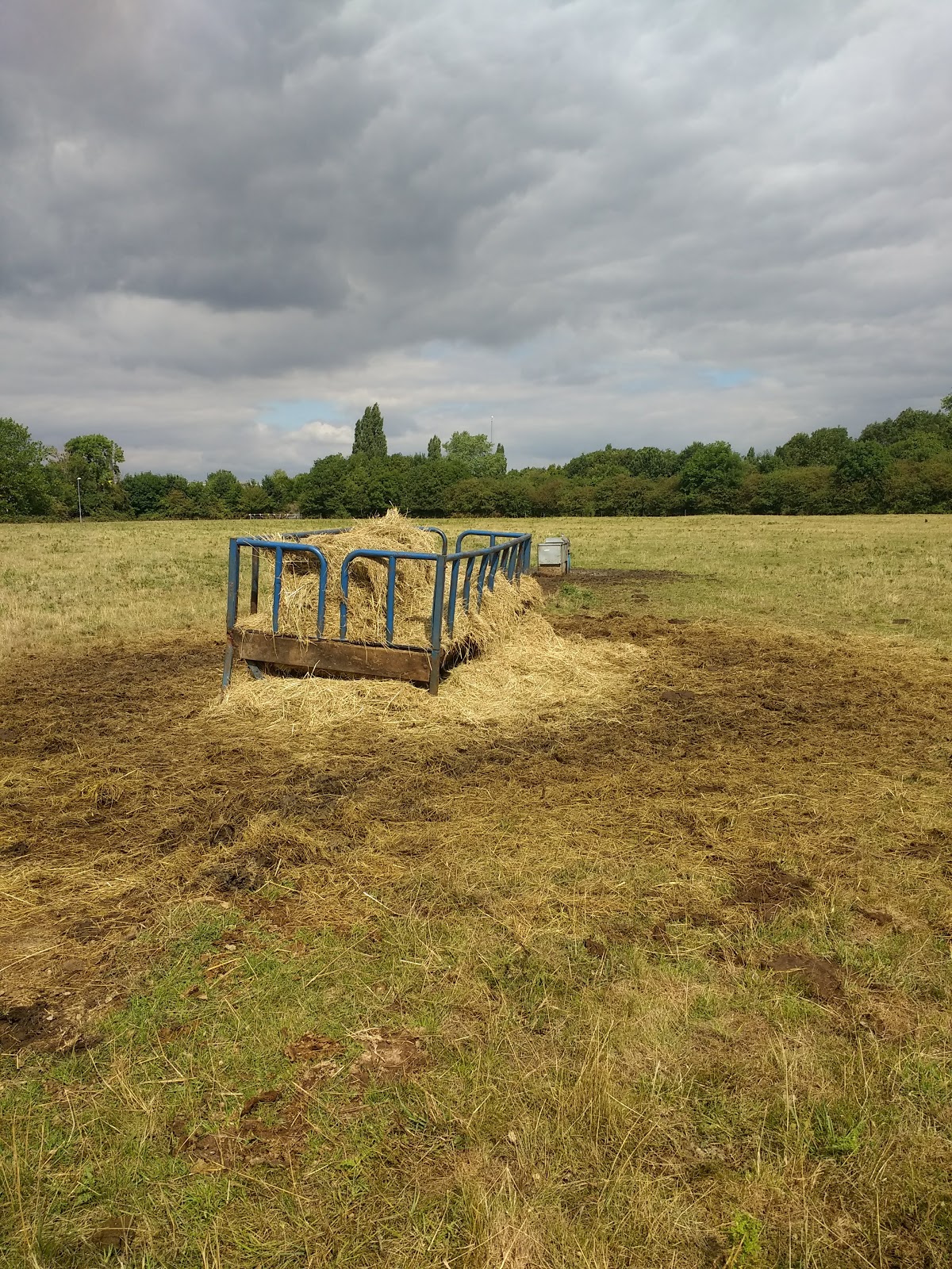 Back into the field I'd started at, the emergency cattle feed had been put out early due to the hot spell. The sight briefly made the area seem remotely rural when looking away from the road ahead.